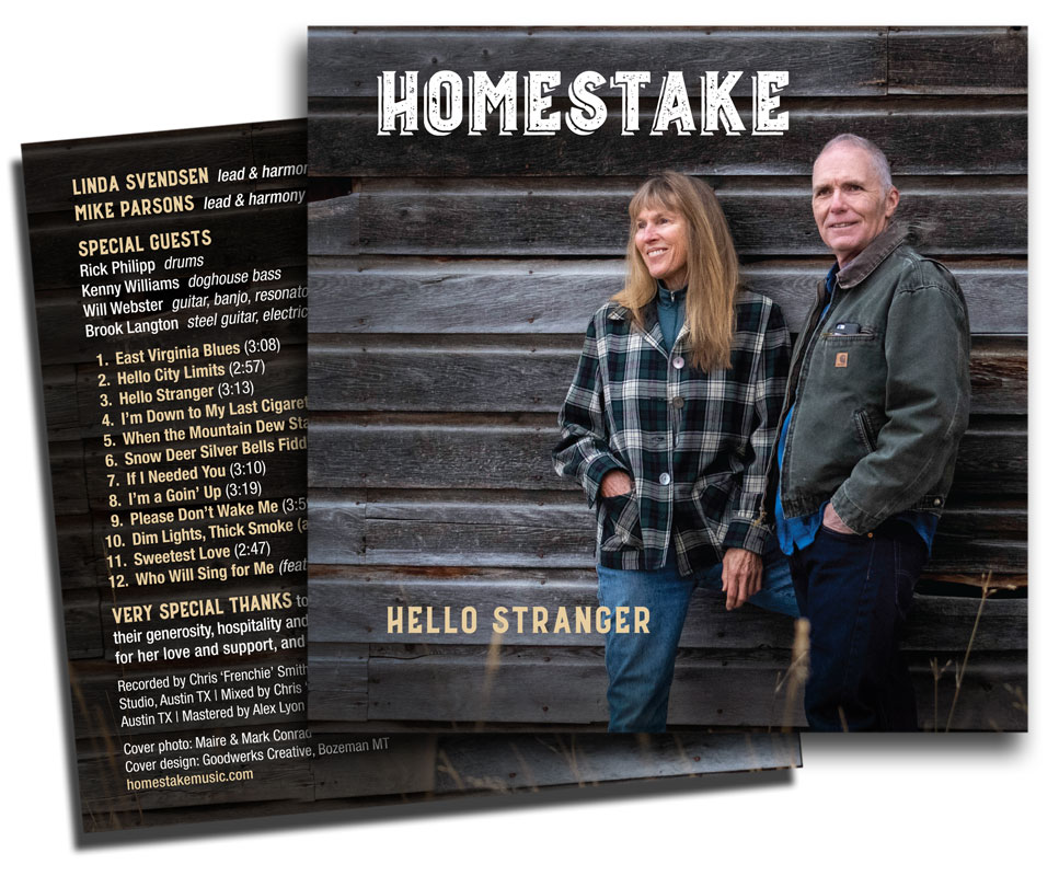 Our new CD, “Hello Stranger,” recorded and mixed in the fall of 2019 features some of our very favorite tunes. Linda and Mike sing lead and harmony vocals, with Mike on guitar, mandolin, banjo, fiddle. We’re extremely proud to feature special guests Rick Philipp on drums, Kenny Williams on doghouse bass, Will Webster on guitar, banjo, resonator guitar and Brook Langton on steel guitar, electric guitar, banjo.